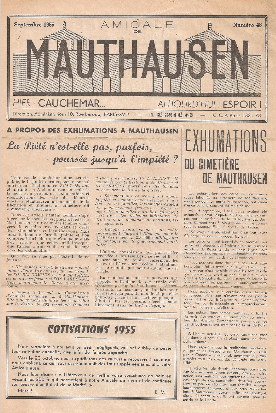 • À la une : À propos des exhumations à Mauthausen : la piété n’est-elle pas, parfois, poussée jusqu’à l’impiété ?