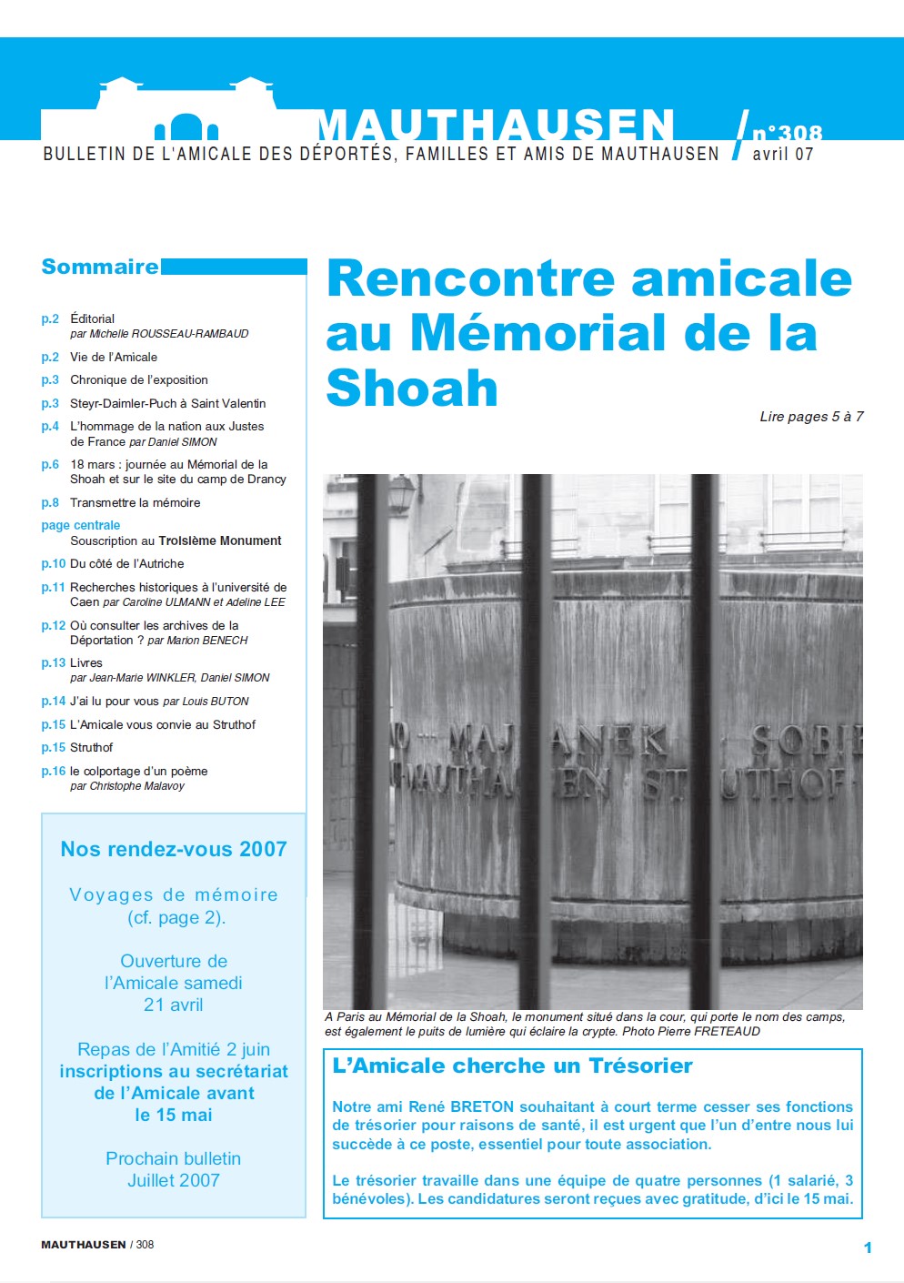 • À la une : Rencontre amicale au Mémorial de la Shoah (lire p. 5-7)
