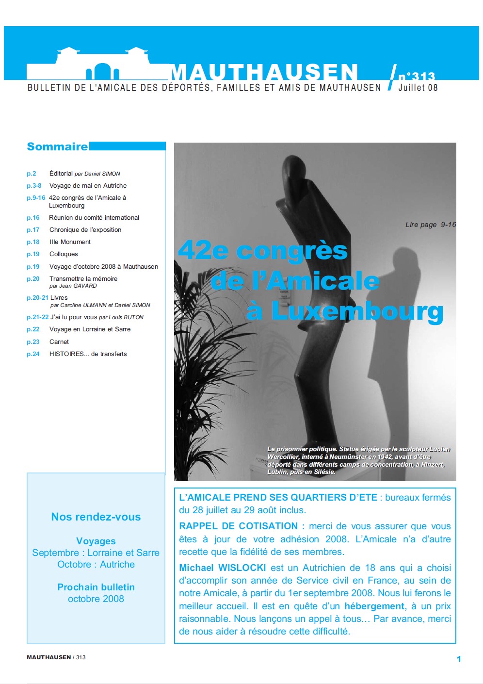 • À la une : 42ème Congrès de l’Amicale à Luxembourg (lire p. 9-16)