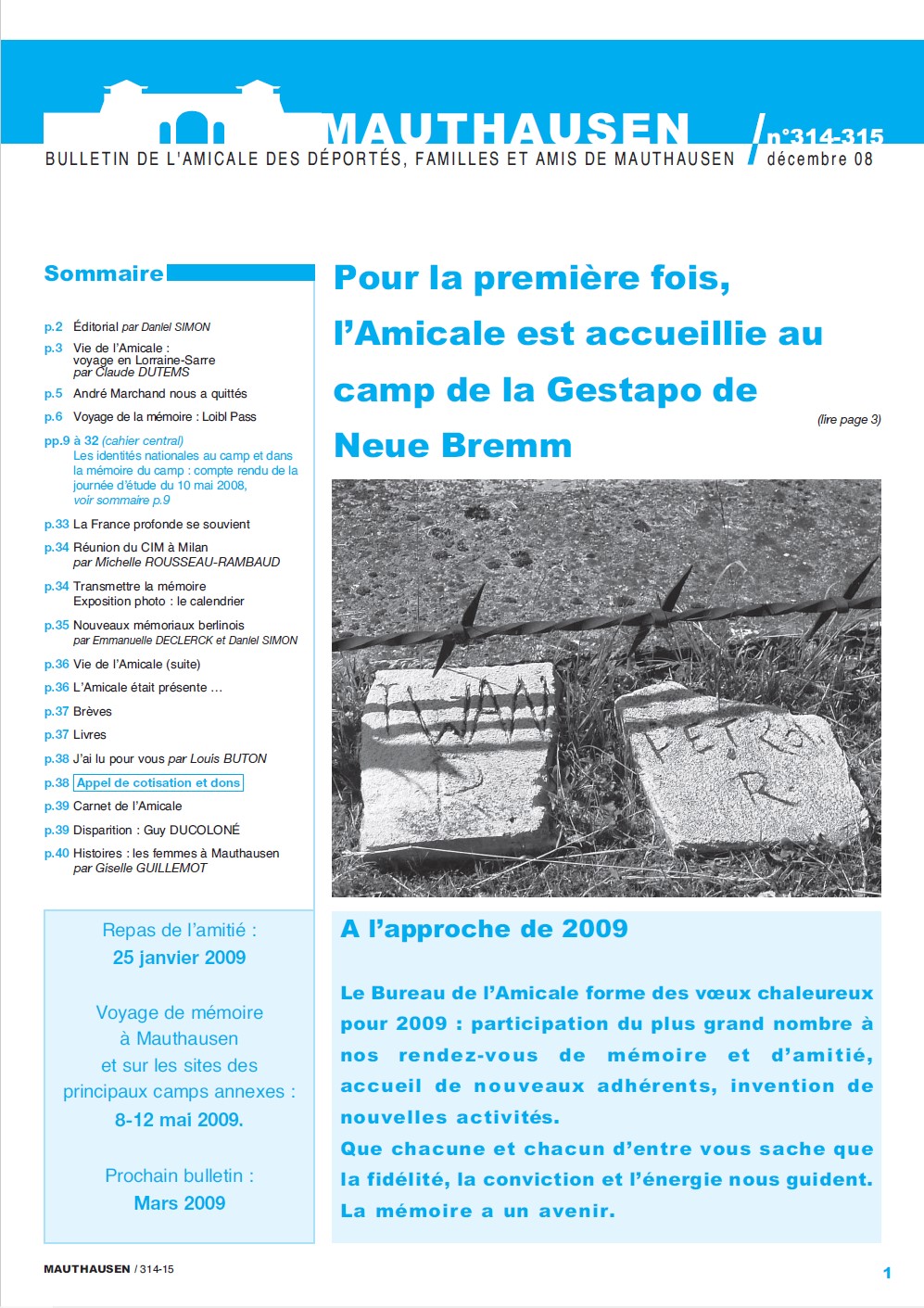 • À la une : Pour la première fois, l’Amicale est accueillie au camp de la Gestapo de Neue Bremm (lire p. 3-5)