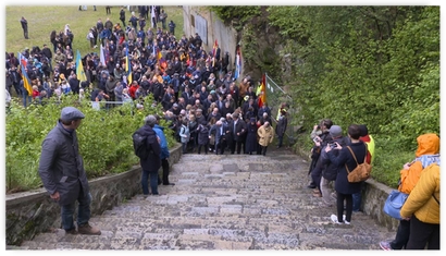 • la montée solennelle de l’escalier de la carrière par les membres du Comité international de Mauthausen et les personnalités qu’ils ont conviées (ambassadeurs, présidents des Comités internationaux des autres camps nazis),