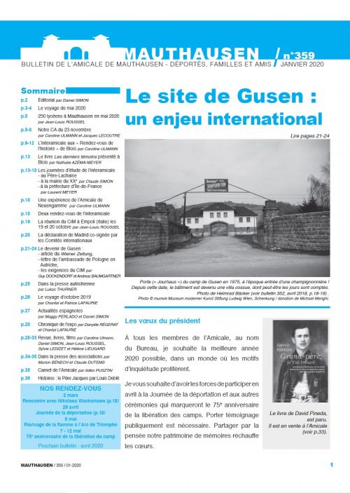 • À la une : Le site de Gusen (lire p. 21-24) – Les vœux du président – Nos rendez-vous