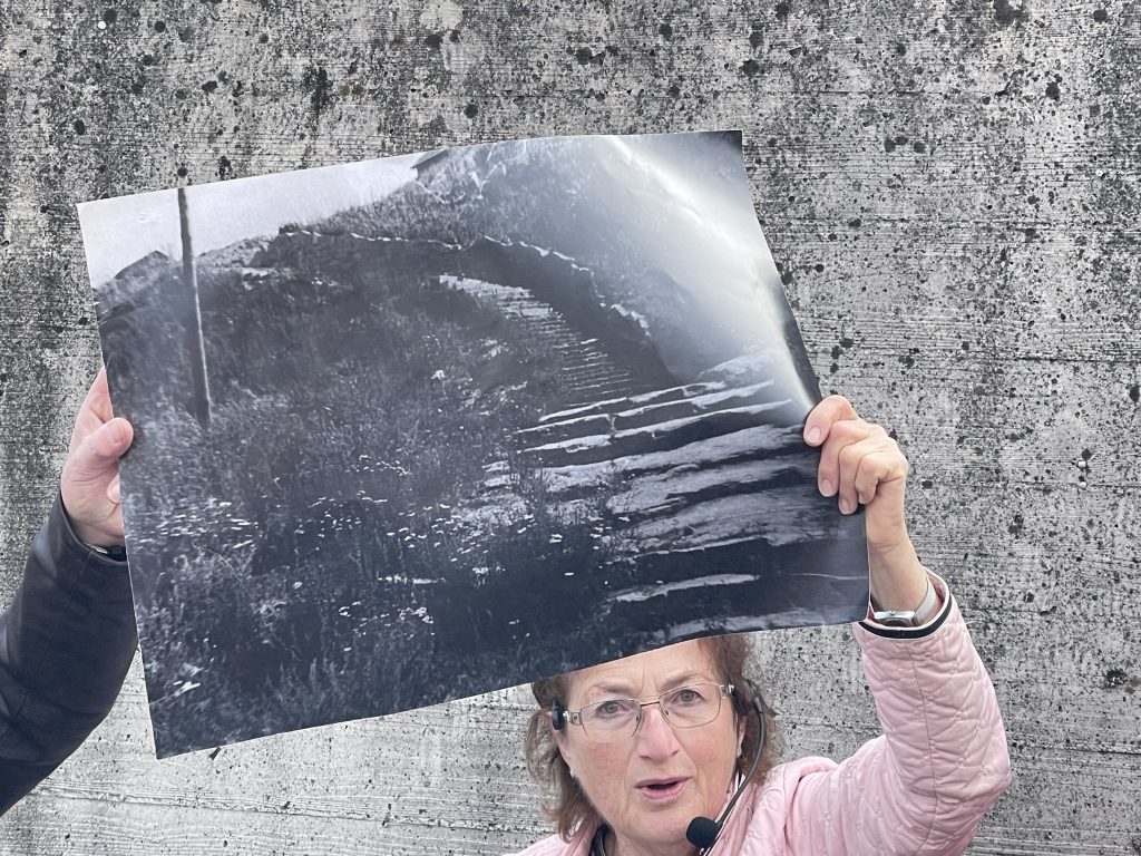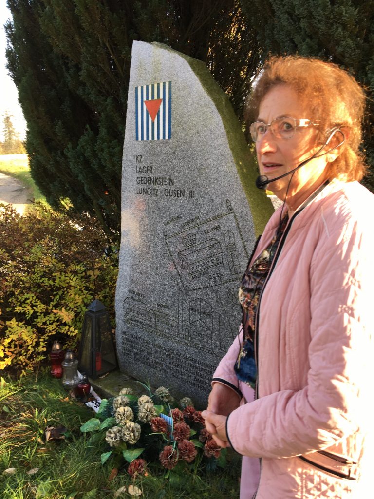 Martha Gammer, une femme de conviction, qui nous a guidés toute la journée. Elle montre ici une photo de l’escalier de la carrière de granit de Kastenhof, détruit par la reprise de l’exploitation par la firme Poschacher après 1945.Devant la stèle française du mémorial de Gusen.Le moment de recueillement à la stèle.L’entrée d’un tunnel du site de Gusen II, village de Sankt Georgen.Andrea Wahl, l’une des responsables de la « région de sensibilisation Mauthausen-Gusen-Sankt Georgen », en compagnie de Guy Dockendorf, président du Comité international de Mauthausen, qui nous a accompagnés durant trois jours.Stèle érigée à proximité du site de Gusen III et d’une fosse commune où reposent les restes de centaines (ou milliers) de victimes, trouvés récemment.