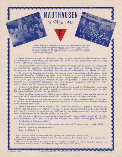 ► pour rappel, lire la page consacrée au Serment de Mauthausen sur le site de l’Amicale