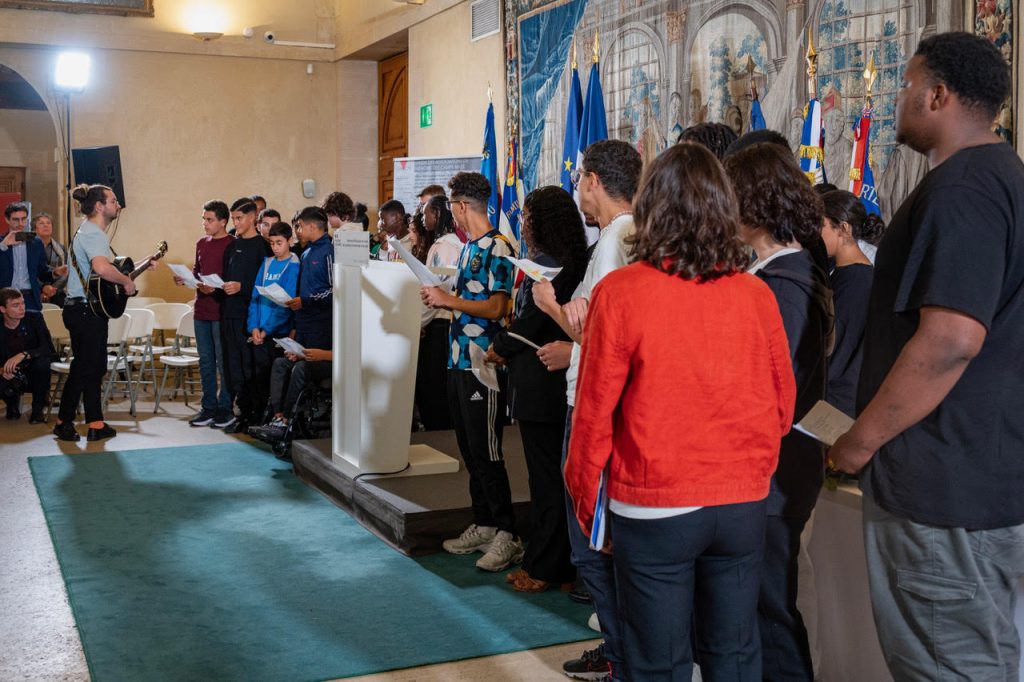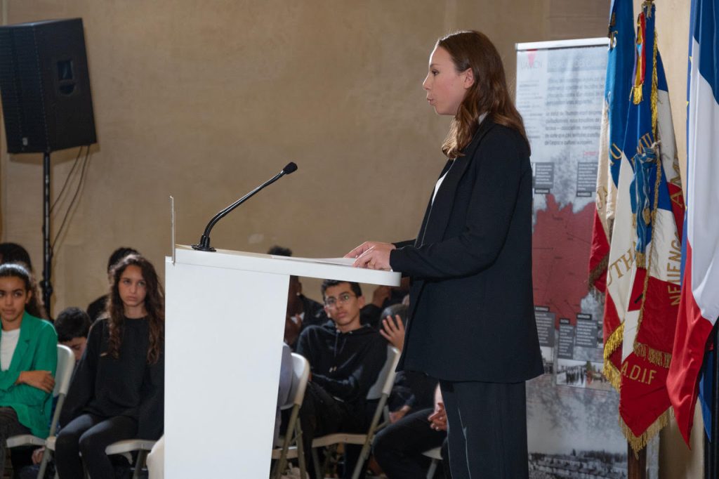 L’assistance nombreuse – 130 personnes environ – et diverse a rassemblé des officiels et, bien sûr, des membres de nos six amicales, mais aussi Capucine Quitard, une jeune comédienne qui a lu avec talent des textes de Robert Antelme et Charlotte Delbo, des étudiants, des collégiens et lycéens d’une chorale de Stains entourés de leurs enseignants.