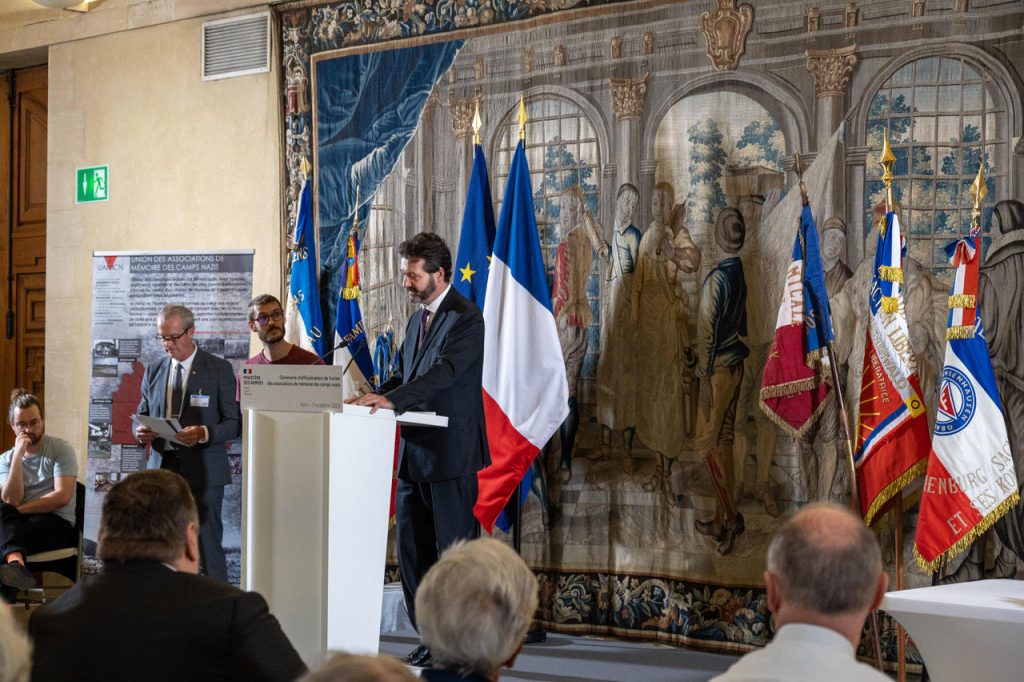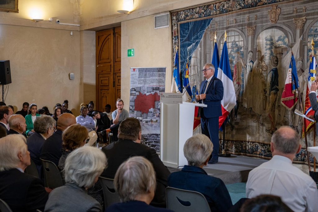 L’Union des Associations de Mémoire des Camps Nazis – en l’occurrence, Buchenwald, Dachau, Mauthausen, Neuengamme, Oranienburg-Sachsenhausen et Ravensbrück – a été officiellement installée mardi 3 octobre, lors d’une cérémonie qui se tenait dans la très belle salle capitulaire du Val-de-Grâce, en présence de Madame Patricia Mirallès, Secrétaire d’État auprès du Ministre des Armées chargée de la Mémoire et des Anciens combattants.